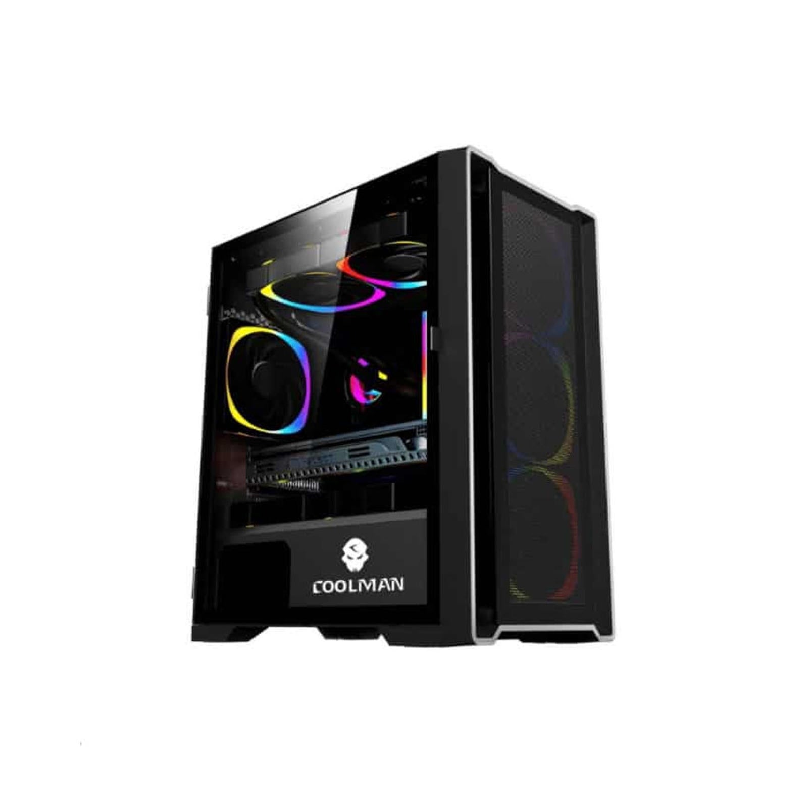 CASING Coolman Ruby Case Tempered Glass w/ 3pcs Colour Fans Black